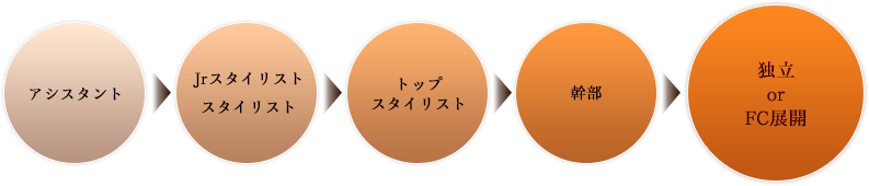 トップスタイリスト リーダー(幹部候補) 店長(会社幹部) |